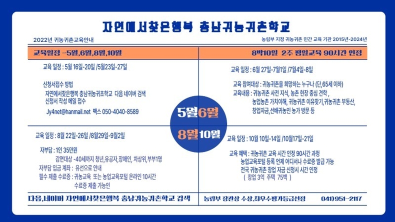◆ 충남귀농귀촌학교 2022년 교육생 모집 안내 ◆