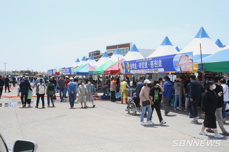 [sbn뉴스=서천] 나영찬 기자 = 충남 서천군에서 3년 만에 대면으로 열린 '제16회 자연산 광어 도미 축제'에 5일간 4만여 명의 인파가 몰리며 흥행하고 있다.