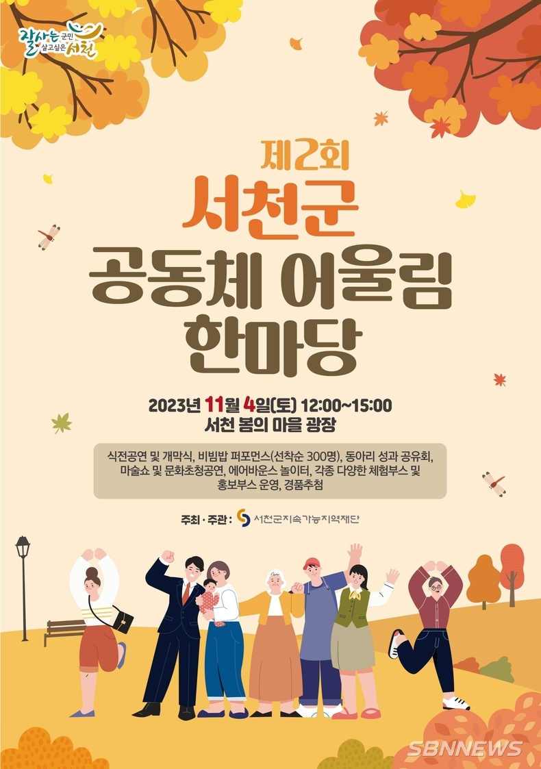 서천군지속가능지역재단이 오는 4일 봄의마을 광장에서 지역공동체와 주민들이 함께 하는 ‘제2회 서천군 공동체 어울림 한마당’ 행사를 개최한다.