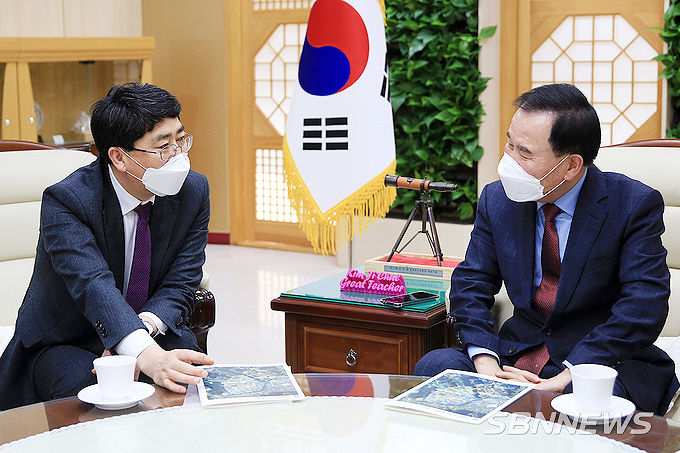 지난 2일 맹정호 시장은 김지철 충남교육감을 만나 성연초의 과밀학급 문제와 학생들의 교육환경 개선을 위한 방안을 제시했다.