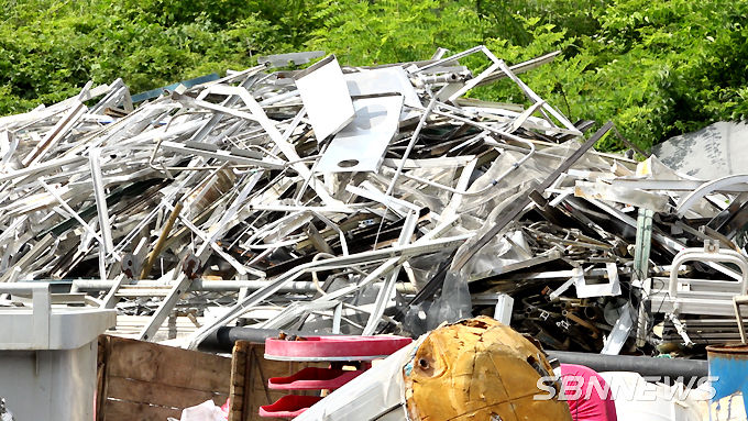 한눈에 봐도 철제 울타리보다 높이 쌓여있을 만큼 폐기물의 양이 상당합니다.