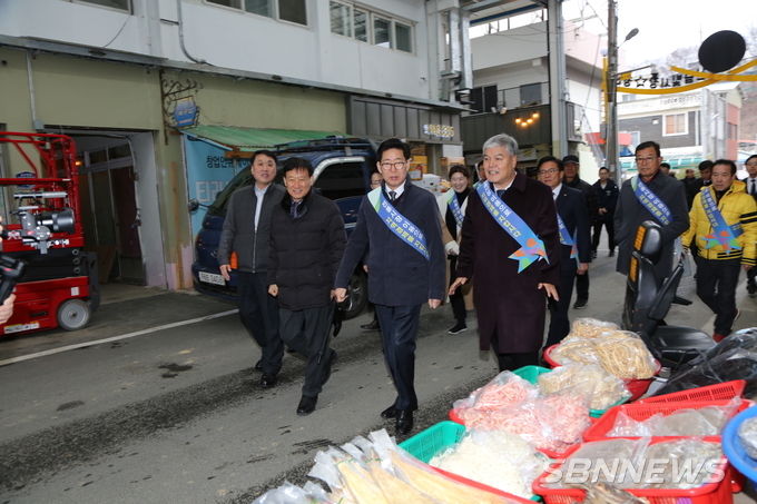 [sbn뉴스=금산] 권주영 기자 = 양승조 충남지사는 지난 22일 금산 주민들의 목소리를 듣기위해 문정우 금산군수를 비롯한 충남도와 금산군 공무원들 20여명과 함께 금산전통시장을 방문했다.