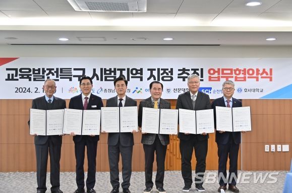 [sbn뉴스-서해신문·서해방송] 교육발전특구 시범지역 공모 신청 및 지정이 임박한 가운데, 충남도가 공모 통과를 위해 도교육청, 아산시, 도내 대학과 손을 맞잡았다.