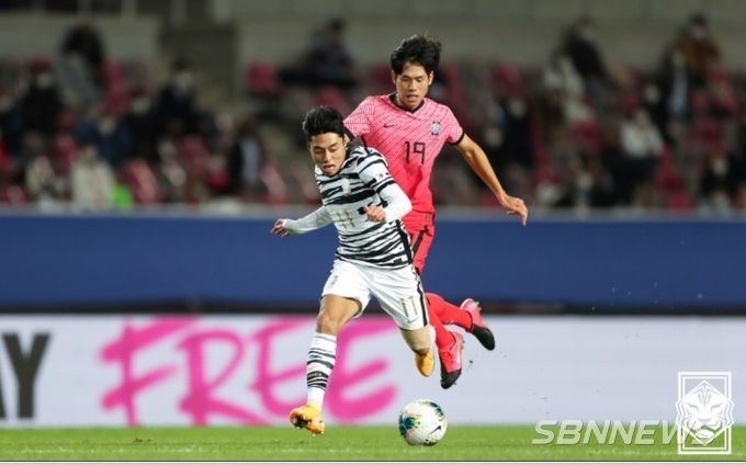 [sbn뉴스=대전] 임효진 기자 = 무려 24년 만에 성사된 한국 축구 국가대표팀과 한국 올림픽 대표팀(U-23)의 친선 매치 2차전은 형님팀인 국가대표팀이 한수 위였다.