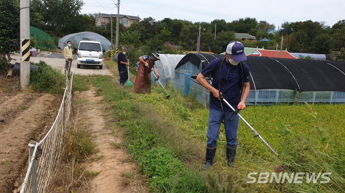 15일 서천읍 신송1리 마을이 민족 고유의 명절인 추석을 맞이해 대청소를 실시했다.
