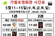 [sbn뉴스=서천] 황민지 기자 = 충남 서천군 기벌포영화관이 11일부터 15일까지의 상영시간표를 안내했습니다. 자세한 사항은 아래를 참고 하시면 됩니다. = 아 래 = ◆ 기벌포영화관 상영시간표 안내 (5월11일 ~ 5월15일) ◆ □ 금주 수요일 ~ 일요일 운영합니다. □ 영화관 내 실내취식 가능합니다. □ 마스크 착용은 필수입니다. 많은 이용 부탁드립니다. □ 관람료 : 일반영화 6천원, 3D입체영화 8천원(할인적용시 일반영화 4천원, 3D입체영화 5천원) □ 관람료 할인(현장에서만 적용) : 경로우대/국가유공자/장애인/영유아 및 13세 이하 어린이 □ 개봉영화 확인 및 예매(좌석지정가능) : 서천군기벌포영화관.net