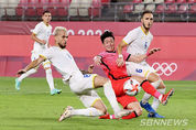 [sbn뉴스=서울] 신경용 기자 = 도쿄올림픽 본선에 나서는 김학범호가 국내에서 열린 두 차례 평가전을 마무리하며 일본으로 향하게 됐다. 김학범 감독이 이끄는 남자 올림픽대표팀은 16일 서울월드컵경기장에서 열린 하나은행 초청 올림픽 축구대표팀 출정식 경기에서 프랑스에 1-2로 졌다. 우승 후보인 아르헨티나(2-2 무), 프랑스와 두 차례 평가전을 마친 대표팀은 17일 일본행 비행기에 오른다. 올림픽 본선에서 조별리그 B조에 속한 한국은 22일 뉴질랜드, 25일 루마니아, 28일 온두라스와 경기를 치른다. 김 감독은 본선 A조에 속해 한국과 8강에서 만날 가능성이 있는 프랑스를 상대로 전력을 숨기면서도 테스트를 이어갔다. 최전방에는 와일드카드로 뽑힌 황의조가 포진했고, 권창훈-이강인-엄원상이 2선에 포진했다. 수비형 미드필더는 김동현과 정승원이 맡았다. 포백은 강윤성-이상민-정태욱-이유현으로 구성됐다. 골문은 송범근이 지켰다. 한국은 강호 프랑스를 상대로 안정적인 수비에 중점을 두며 빠른 역습과 세트피스를 노렸다. 전반 초반에는 수비수 이상민이 코너킥 상황에서 올라온 공을 헤더로 연결했으나 골문을 벗어났다. 전반 중반에는 황의조가 아크 정면에서 터닝슛을 시도했