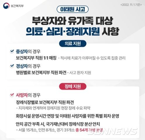 [sbn뉴스-서해신문·서해방송] 부상자와 유가족 대상 의료·장례·심리 지원에 총력을 다하겠습니다.