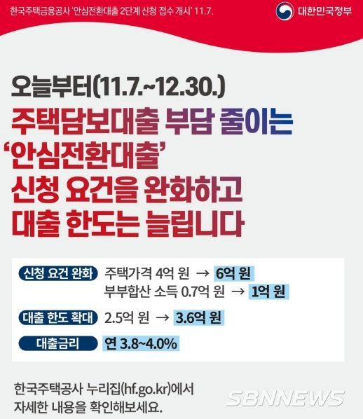 [sbn뉴스-서해신문·서해방송] 11월 7일부터 12월 30일까지 ‘안심전환대출’ 신청 요건을 완화하고 대출 한도는 늘립니다.