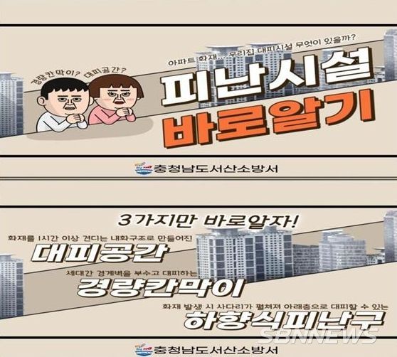 이에 소방서는 아파트 화재 시 엘리베이터 사용을 지양하고 피난계단 사용을 적극 권장하며 ▲세대 간 경계벽을 부수고 대피하는 경량칸막이 ▲화재를 1시간 이상 견디는 내화구조로 만들어진 대피 공간 ▲아래층으로 피난할 수 있는 하향식 피난구 등 대표적인 아파트 대피시설에 대해 소방안전교육 및 홍보를 실시하고 있다.