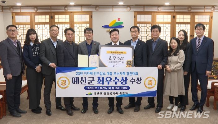 [sbn뉴스-서해신문·서해방송] 예산군은 행정안전부 주최로 지난 6일 정부세종청사 중앙동에서 열린 ‘2023 지자체 인구감소 대응 우수사례 경진대회’에서 최우수상을 수상했다.
