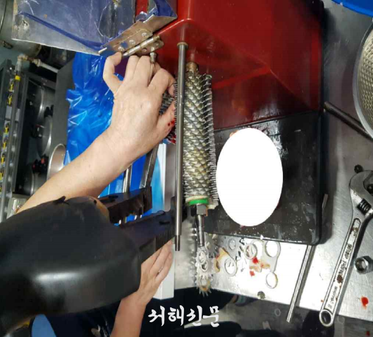 이 사고로 직원(여·58세) 한명이 다쳐 현장에서 지혈 후 당진 종합병원으로 이송됐다.