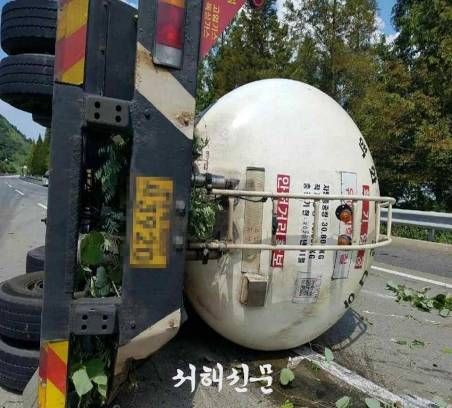 보령시, 대형 탱크로리 대 승용차 간 추돌사고···3명 부상