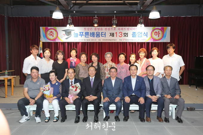 서천군자원봉사센터(센터장 구창완) 부설 늘푸른배움터가 2017년 검정고시에서 초, 중, 고 합격자 15명을 배출하고 2일 서천군문화예술창작공간에서 13번째 졸업식을 개최했다.