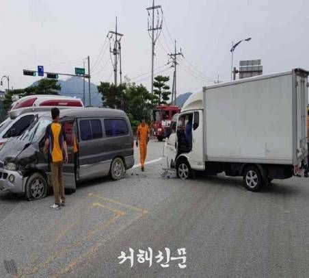 공주시, 승합차 대 1톤 화물차 추돌···2명 부상
