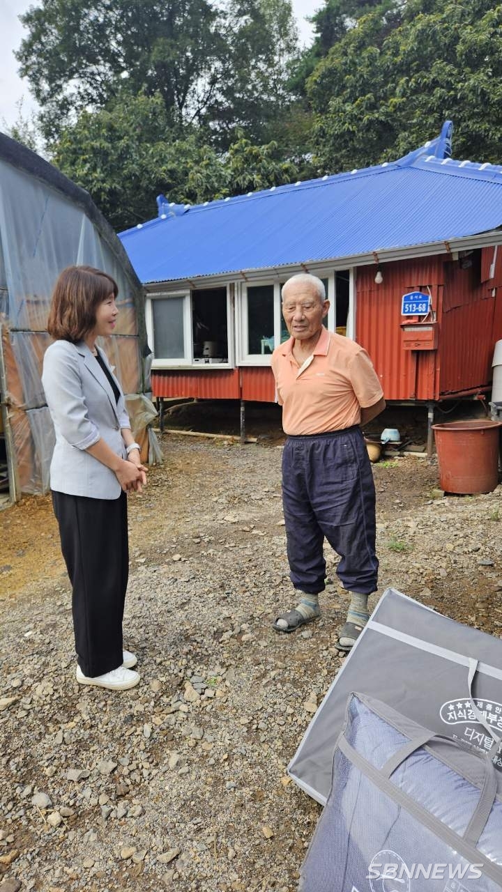 이명란 종천면장은 지난달 30일 독거 어르신 가정을 방문해 추석명절 인사를 건네고 생필품을 전달했다.