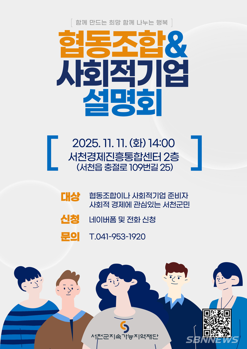 (재)서천군지속가능지역재단(이사장 김기웅)은 오는 20일 서천경제진흥통합센터에서 ‘협동조합·사회적기업 설명회’를 연다.