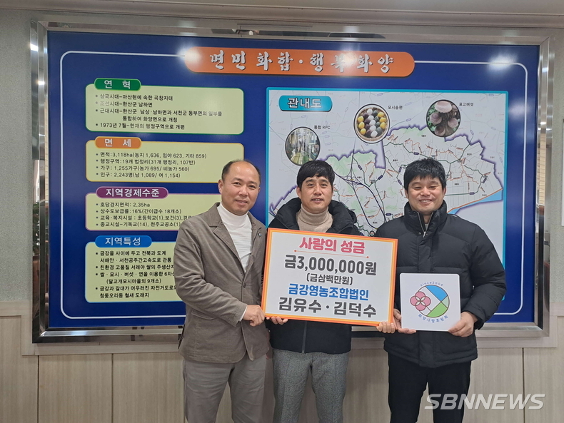화양면 소재 금강영농조합 김유수·김덕수 형제는 지난 29일 지역 내 어려운 이웃을 돕기 위해 화양사랑후원회에 후원금 300만 원을 기탁했다.