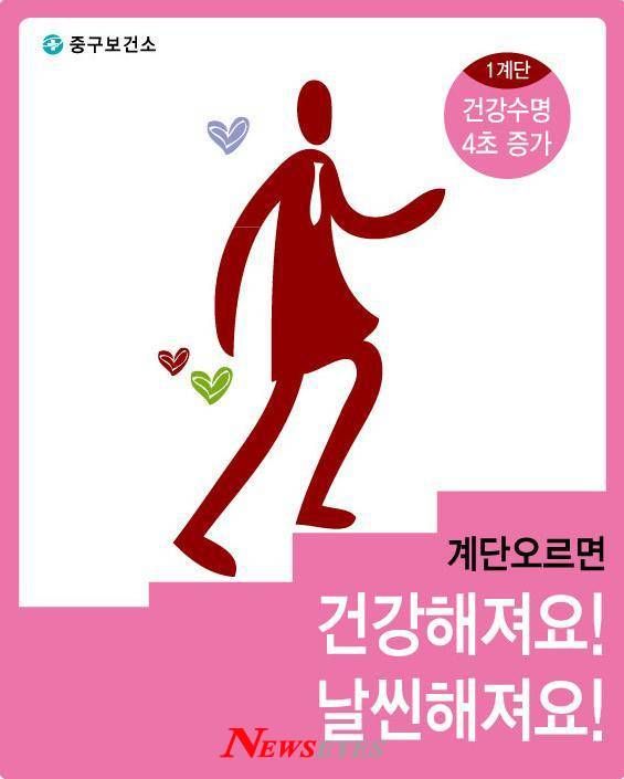 대전시 중구(구청장 박용갑)는 생활터를 활용한 운동실천 환경조성과 구민의 삶의 질 향상을 위해 50여 공동주택 라인별 1층에 ‘계단이용 권장 표지판’을 부착해 계단오르기 생활화를 유도하고 있다고 12일 밝혔다.