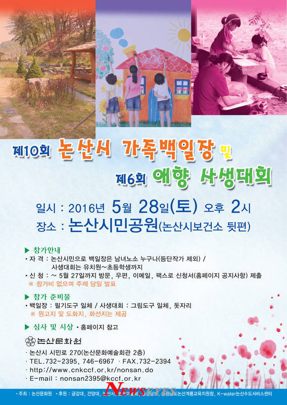 충남 논산문화원(원장 류제협)은 오는 28일 오후 2시, 논산시민공원에서 제10회 논산시 가족 백일장 및 제6회 애향사생대회를 개최한다고 23일 밝혔다.