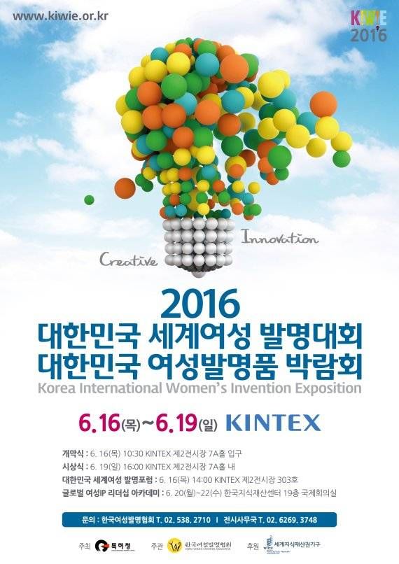 특허청(청장 최동규)과 한국여성발명협회(회장 조은경)는 오는 16일(목)부터 19일(일)까지 일산 킨텍스에서 제2의 조이(Joy)를 꿈꾸는 여성들의 발명 특허 제품을 만날 수 있는 국제 전시회인‘2016 대한민국세계여성발명대회 및 여성발명품박람회’를 개최한다고 9일 밝혔다.