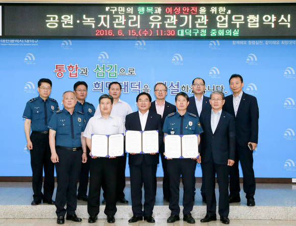 대덕경찰서는 관내 공원·녹지 정기순찰, 치안관리 및 범죄 취약요소 진단, 환경개선에 대하여 협력하며 동부소방서는 공원·녹지 내 화재예방, 소방시설 진단 등 각종 재난상황 발생 시 대덕구와 상호 협력을 통한 능동적 대응을 모색한다.