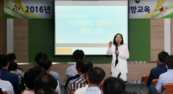 대전 동구(구청장 한현택)는 22일, 구청 중회의실에서 공직자 200여 명이 참석한 가운데 밝고 건강한 직장 분위기 조성을 위해 직장 성폭력․가정폭력 예방교육을 실시했다고 밝혔다.