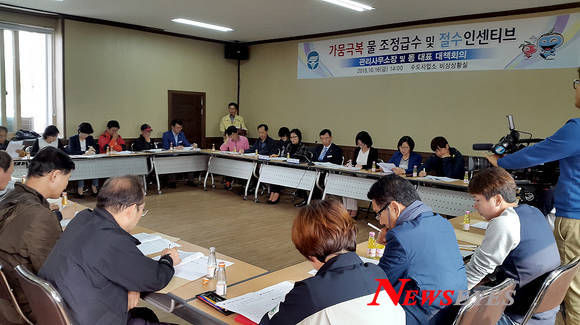 이날 대책회의에서는 지난 8일부터 조정급수 시행에 따라 대규모 아파트 주민들의 절수 운동 실천방법과 아파트별 물 공급 목표량(20%)을 제시하고 이에 따라 자율적인 감량 운동에 적극적으로 참여를 호소했다.