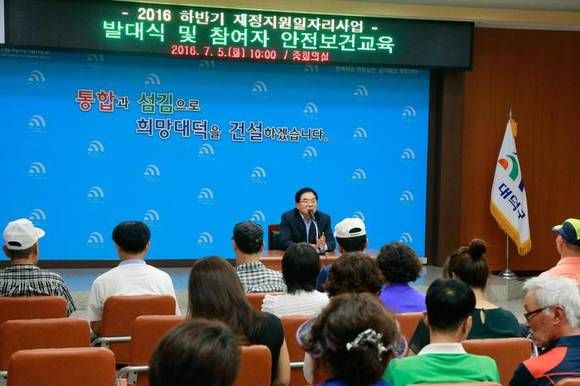 대전 대덕구(구청장 박수범)는 5일 대덕구 공공근로 및 지역공동체일자리사업 참여자를 대상으로 2016년 하반기 재정지원일자리사업 안전보건 및 재해예방 교육을 실시했다.