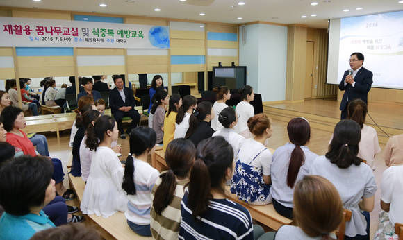 대전 대덕구(구청장 박수범)는 지난 6일 비래동 소재 혜원유치원(원장 김원)에서 교직원, 급식관계자와 학부모들을 대상으로 재활용 꿈나무교실을 열고 여름철 식중독예방 및 올바른 쓰레기 분리배출요령에 대해 교육을 실시했다.