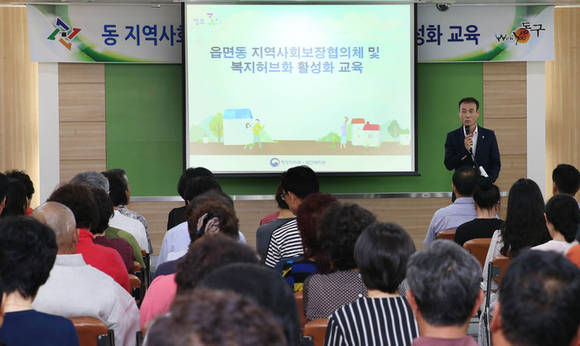 대전 동구(구청장 한현택)는 7일 구청 중회의실에서 각 동 복지위원, 자생단체 회원, 복지업무담당 공무원 등 2백여 명이 참석한 가운데 동 지역사회보장협의체 및 복지허브화의 활성화를 위한 역량강화 교육을 가졌다고 밝혔다.