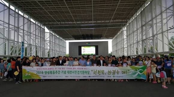 대전시(시장 권선택)는 2016년 양성평등주간(7.1~7.7)을 맞아 9일(토) 오후 7시 엑스포시민공원 및 한밭수목원 일원에서 시민 1천여 명이 참석한 가운데‘성평등, 한걸음 더!-대전시민걷기 한마당’행사를 성황리에 개최했다고 밝혔다.