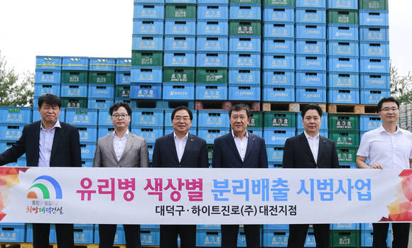 구는 14일 하이트진로(주) 대전지점과 업무협의를 갖고 대덕구 한 관내 공동주택을 대상으로 공산품 폐유리병의 색상별 분리배출 시범사업을 실시한다고 밝혔다.