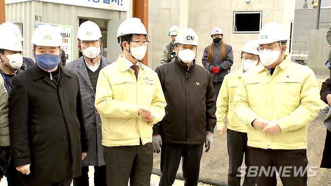 이날 양승조 충남지사를 비롯한 점검단은 아산시 공동주택 건설 현장을 찾아 시공관리, 각종 자재 품질관리, 현장관리, 코로나19 대비 현황 등을 점검했습니다.