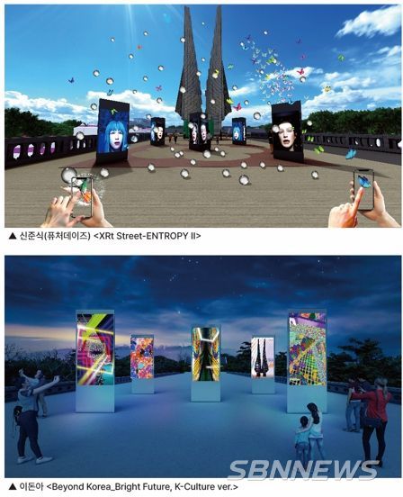 채병록 ‘천안중첩전경도’는 천안의 흥타령 민요에서 영감을 받아 한국적인 요소를 현대적인 색채와 구성으로 재해석한 그래픽을 선보이게 되며, 티안 작가는 겨레의 탑에 내재된 화합과 번영에 대한 염원을 재해석해 ‘행복한 울림’을 선보이며, 우리 전통에 내재된 길상적 요소를 디지털과 융합해 관람객을 환상의 세계로 초대한다.