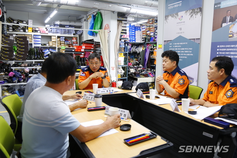 이날 본부장 일행은 시장 관계자들과의 간담회를 통해 시장 현황 및 재건축 진행 상황을 청취하고, 스마트 소방시스템을 포함한 소방시설 운영 상태를 점검하며 화재 예방사항을 당부했다.