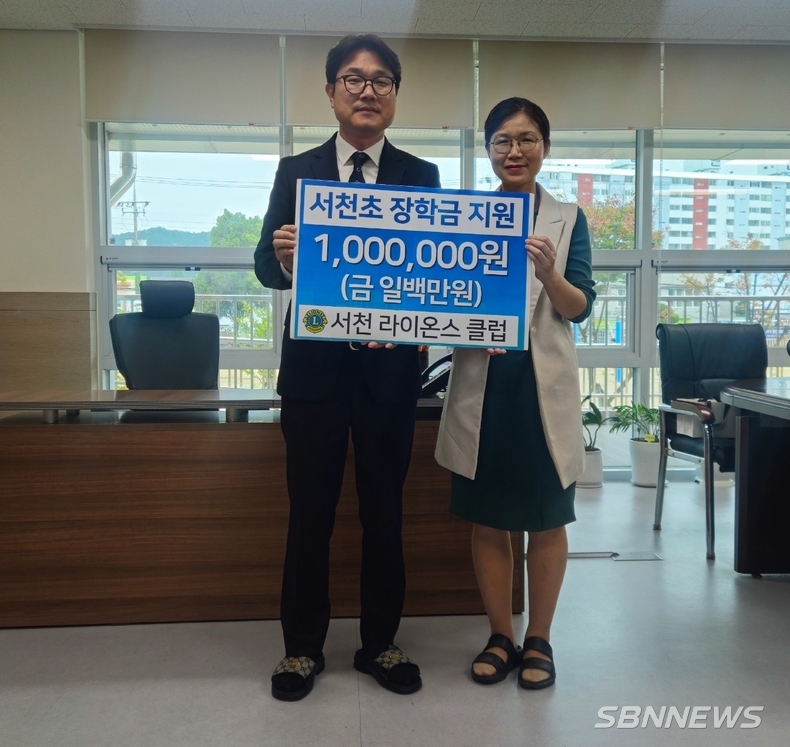 서천 라이온스클럽(회장 김범태)은 지난 14일 서천초등학교에 장학금 100만 원을 전달했다.
