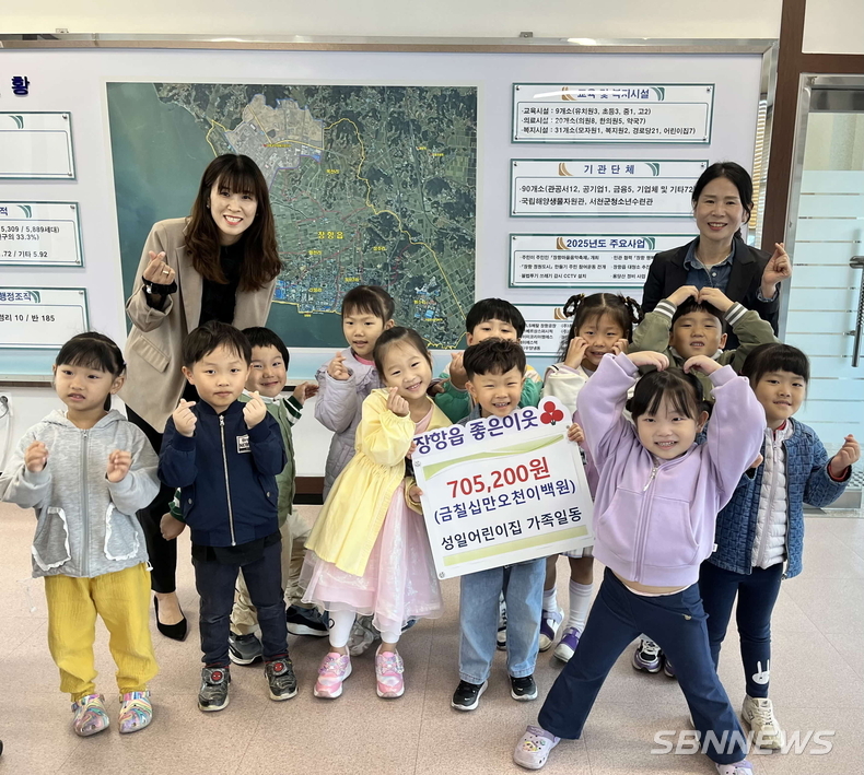 장항읍 행정복지센터는 지난 21일 성일어린이집 원생과 가족들이 어려운 이웃을 돕기 위해 후원금 705,200원을 기탁했다고 밝혔다.