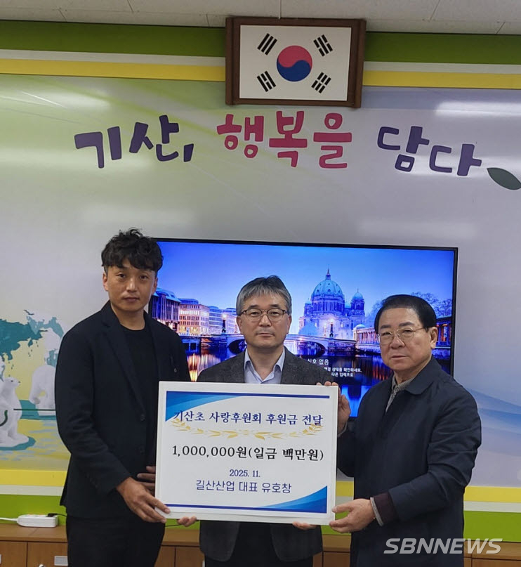 기산초등학교(교장 이재천)는 지난 2025년 11월 19일 수요일에 기산초등학교 졸업생(길산산업 대표 유호창)의 학교 발전기금(100만 원) 전달식을 가졌다.