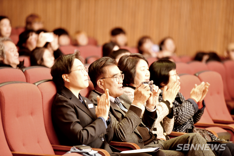 반면 김기웅 군수는 연주회 중간중간 어린이 합창단의 공연을 휴대전화로 동영상 촬영하는 등 남다른 애정을 보여 공연장에 묵직한 감동을 선사하기도 했다.