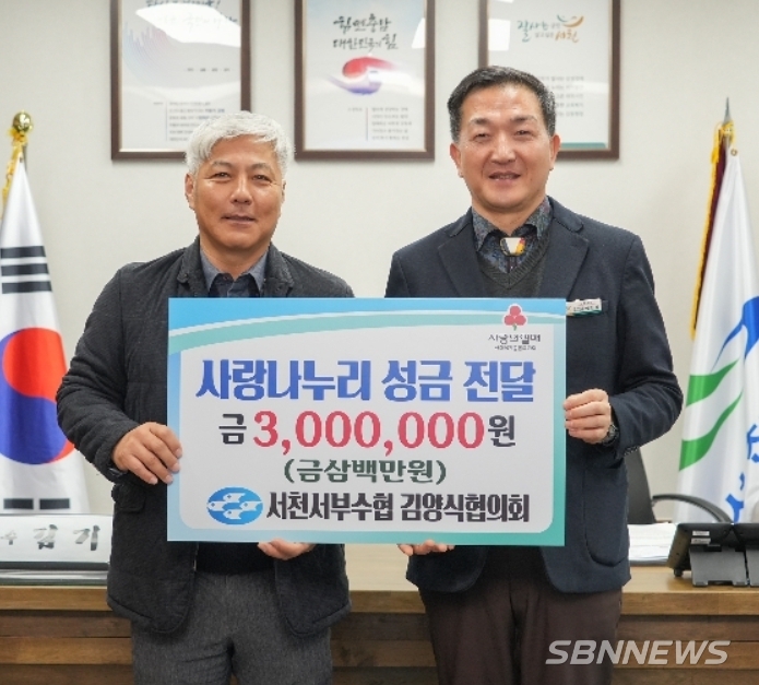 서천군은 서천서부수협 김양식협의회가 지난 16일 연말연시를 맞아 어려운 이웃을 돕기 위한 사랑나누기 성금을 기부했다고 밝혔다.