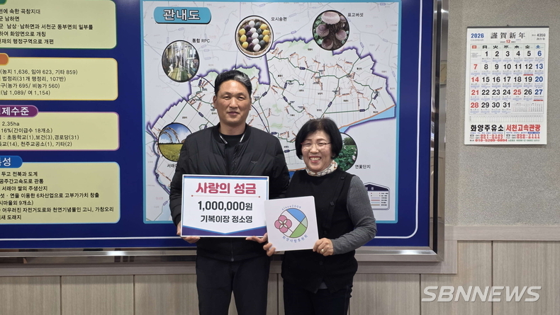 정 이장은 평소 이웃과 지역사회에 대한 꾸준한 관심을 바탕으로 나눔의 가치를 실천해 왔으며, 이번 성금 기탁 또한 어려운 이웃을 향한 마음을 행동으로 옮긴 사례로 지역사회에 훈훈함을 더하고 있다.