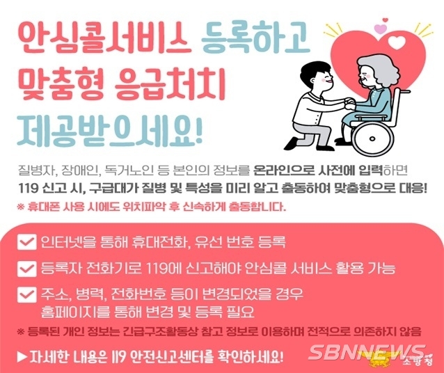 119안심콜 서비스는 전화번호, 주소, 병력, 복용 약물 등 개인정보를 사전에 등록해 두면 119 신고 시 해당 정보가 출동 대원에게 제공돼 보다 신속하고 맞춤형 응급처치와 이송을 지원하는 제도다.
