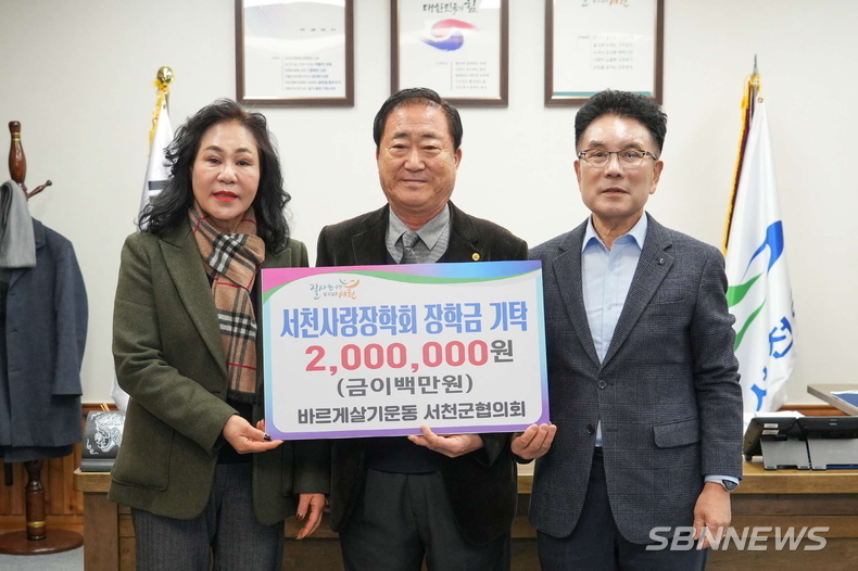 [sbn뉴스-서해신문·서해방송] 서천 바르게살기운동, 장학회에 200만 원 기탁 등 24일 충남 서천군 기관소식을 전한다.