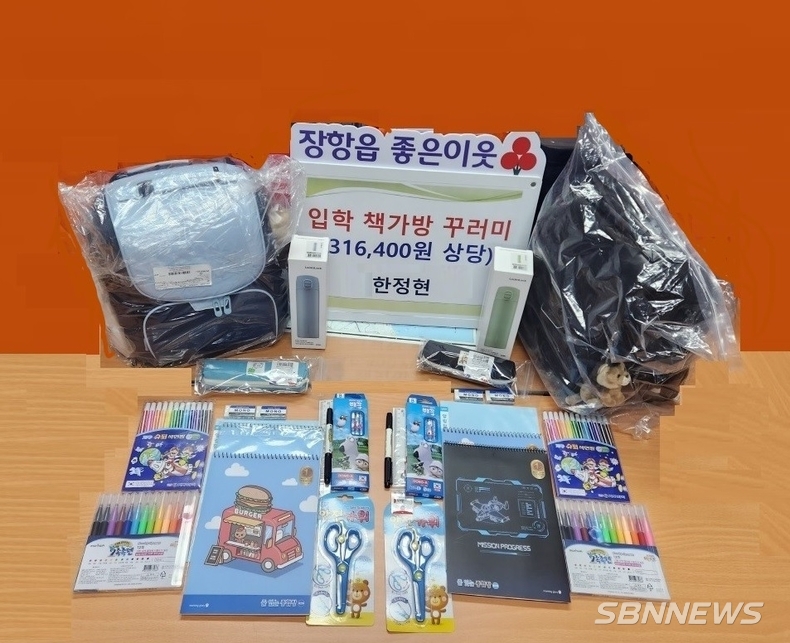 한국인·김지후 부부는 둘째 자녀 한정현 군의 초등학교 입학을 기념해 장항읍에 거주하는 초등학교 입학생 2명에게 31만원 상당의 학용품과 책가방, 텀블러 등으로 구성된 ‘입학 책가방 꾸러미’를 전달했다.