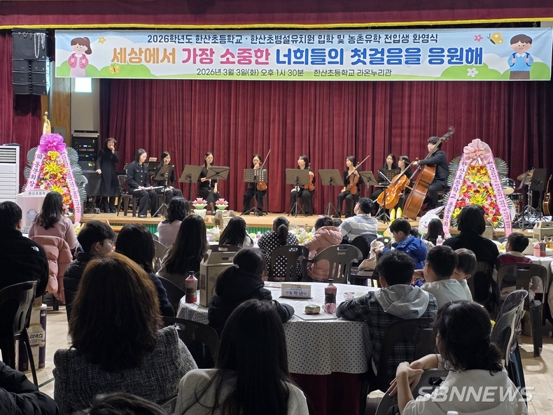 한산초는 지난 3일, 2026학년도 초등학교 및 병설유치원 입학식과 함께 '농촌유학 전입생 환영식'을 성황리에 개최했다고 밝혔다.