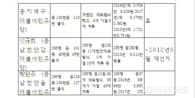 이는 충청권 지역구의원을 개개인의 입법 활동과 본회의 출석률 성적표에다 20대 국회개원후 지난해 말까지 정치후원금도 동시 공개된 것이어서 의미가 있다.