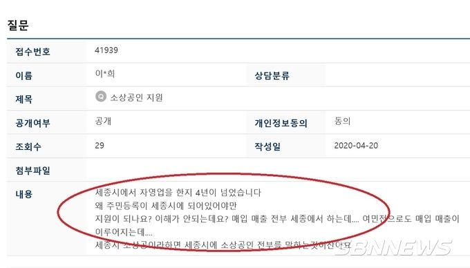 #3,세종시에서 자영업을 한지 4년이 넘었다. 왜 주민등록이 세종시에 되어있어야만 지원이 되나? 이해가 안된다. 매입 매출 전부 세종에서 하는데. 여민전으로도 매입 매출이 이루어지는데. 세종시 소상공이라하면 세종시에 소상공인 전부를 말하는것아닌 가(4월 20일 시민 이*희 질문).