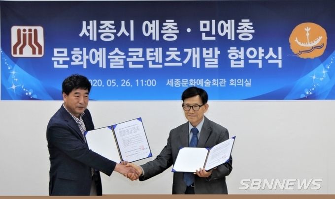 ![26일 세종지역 양대 종합예술단체인 (사)한국예술문화단체총연합회세종시연합회(이하 세종예총)와 (사)한국민족예술단체총연합세종지회(이하 세종민예총)가 문화예술발전과 시민들의 문화향유에 기여하기로 협약식을 가졌다. [사진=세종시 제공]](http://www.sbnnews.co.kr/data/photos/20200522/art_15904913205637_8a8e3d.jpg)