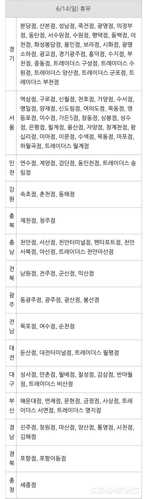 [sbn뉴스=김연희 기자] 개정된 유통산업발전법 시행령 발효에 따라, 대형마트인 이마트는 매월 2회 휴무를 실시하고 있다.5월 넷째 주에 이어 6월 둘째 주 이마트, 홈플러스, 롯데마트, 트레이더스, 코스트코 등 대형마트 대부분이 휴무일을 맞았다.